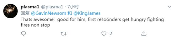 加州州长加文•纽瑟姆29日发推文感谢詹姆斯,并附上了救灾人员吃玉米饼的图片。↓