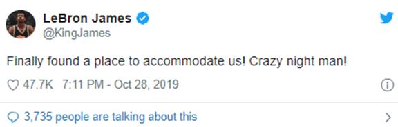 詹姆斯还在稍后更新的一条推特“报平安”,说已经找到住处。↓