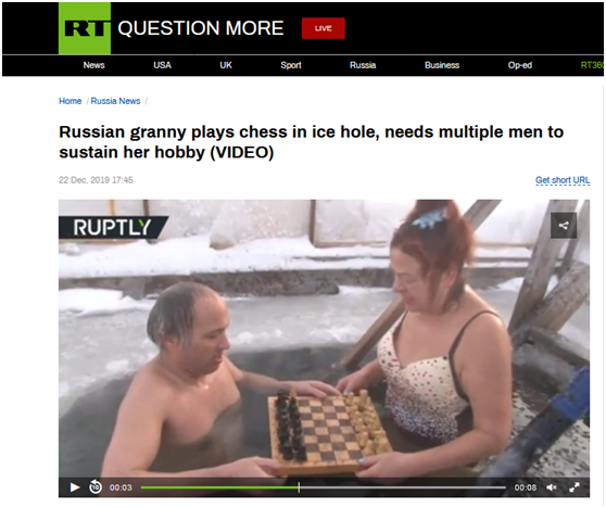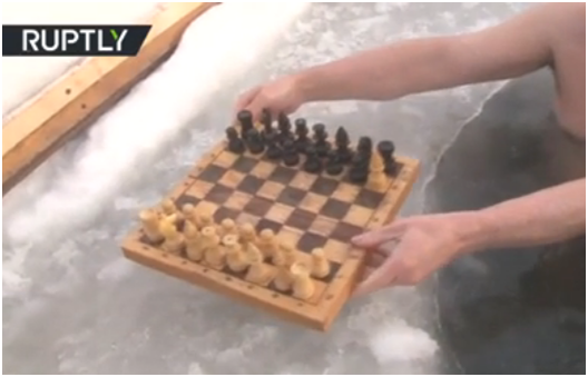 RT说,每当普什卡列娃准备坐下来下棋时,她都得邀请几个男人和她一起——因为据这位象棋爱好者透露,没有人能像她一样一直待在冰水里。