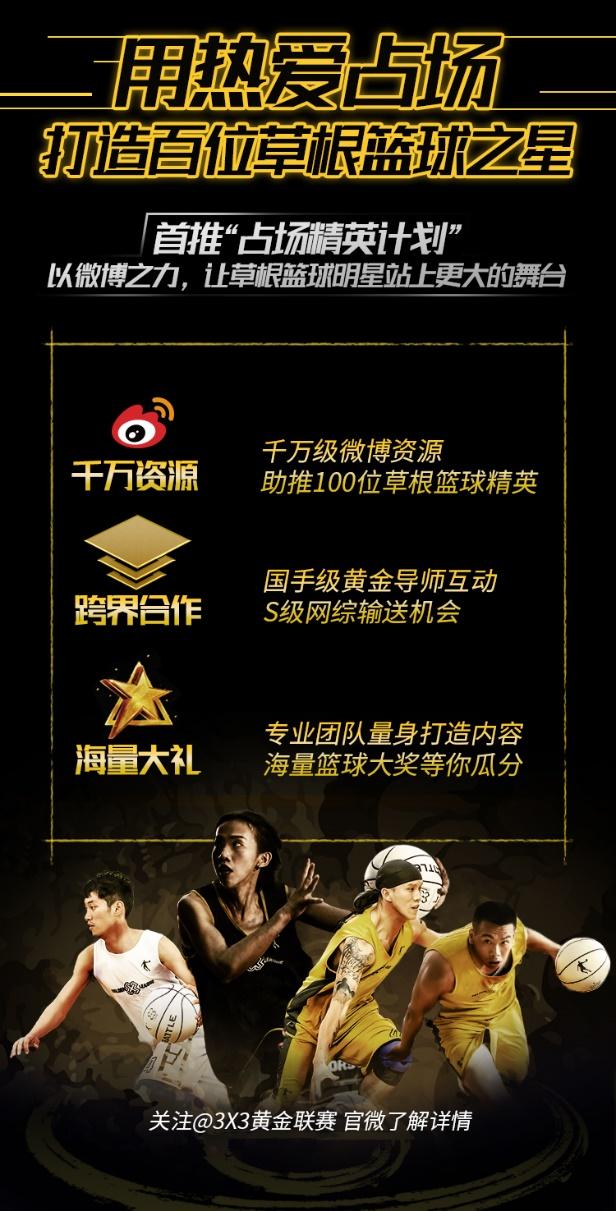 新赛季,3X3黄金联赛将以“占场为王”为主题,并将在未来的6个月内,覆盖全国30个赛区,让广大篮球爱好者回到球场,重拾热爱。同时,3X3黄金联赛也将推出“占场精英”计划,将以千万级微博资源助推百位草根篮球精英,让他们在赛事中发光,站上更大的舞台。