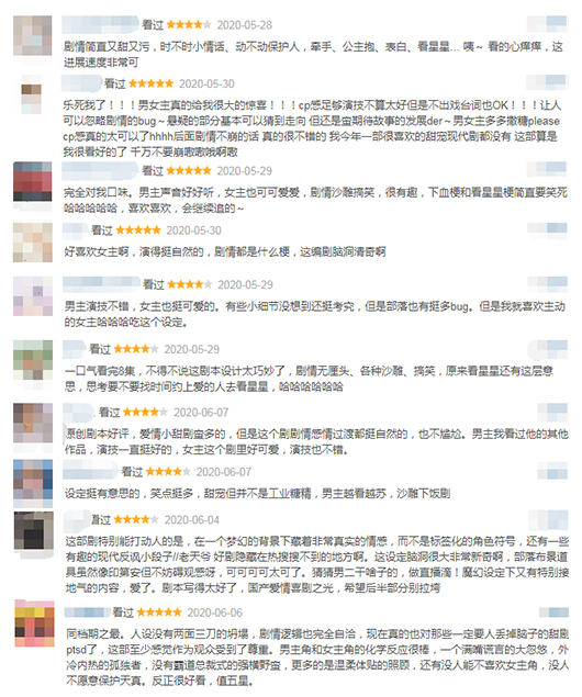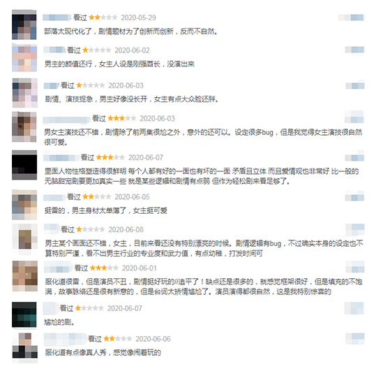 其中大部分网友给与好评,表示“剧情简直又甜又污,时不时小情话、动不动保护人,牵手、公主抱、表白、看星星… 咦~ 看的心痒痒”、“好喜欢女主啊,演得挺自然的,剧情都是什么梗,这编剧脑洞清奇啊”、“不得不说这剧本设计太巧妙了,剧情无厘头、各种沙雕、搞笑”、“在一个梦幻的背景下藏着非常真实的情感,而不是标签化的角色符号,还有一些有趣的现代反讽小段子。这设定脑洞很大非常新奇啊,部落布景道具虽然像印第安但不妨碍观感呀,可可可可太可了。”