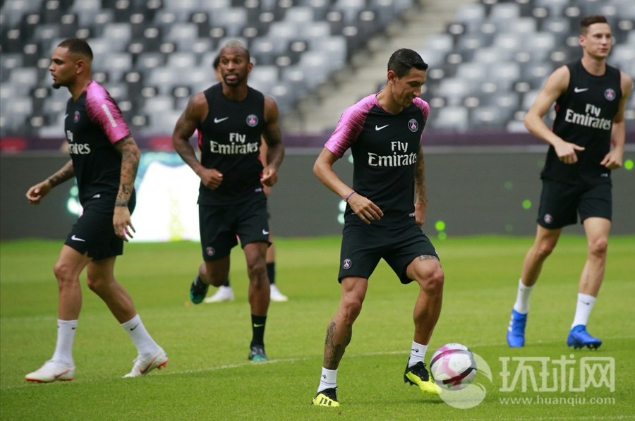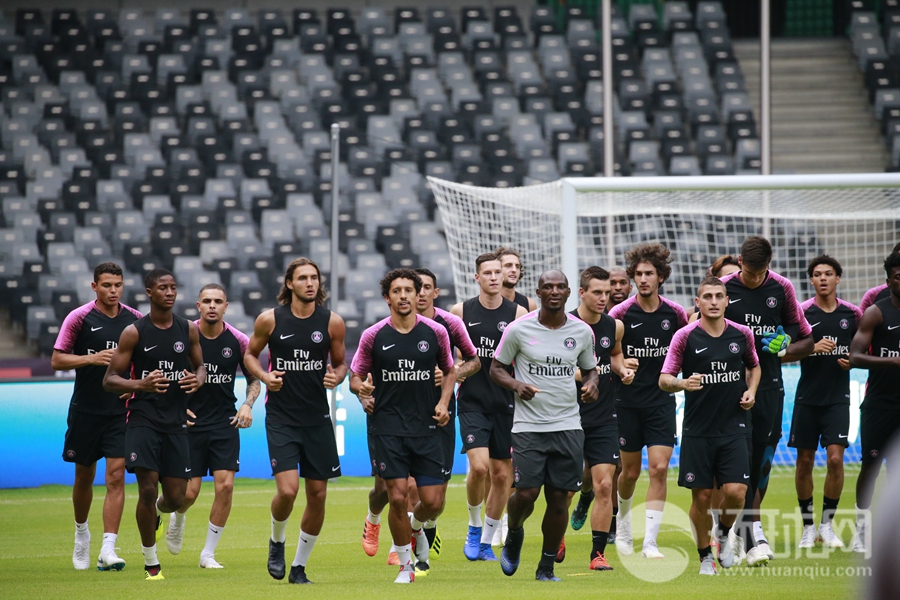 法国超级杯巴黎圣日耳曼赛前训练 孙雯、王霜现身
