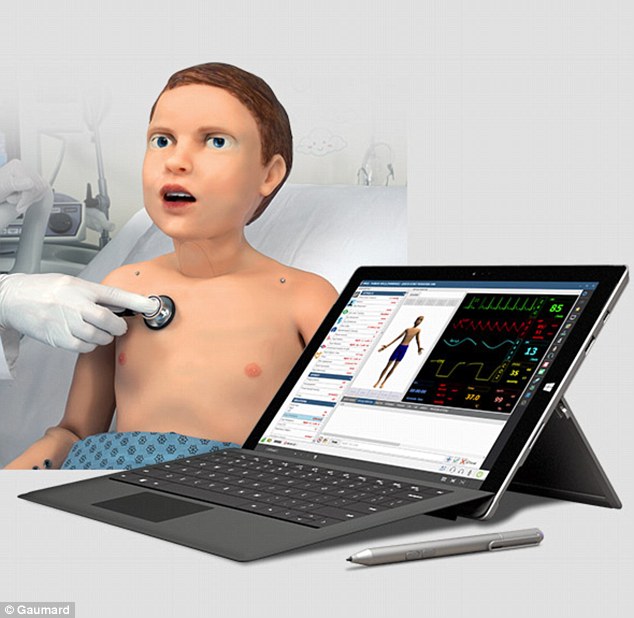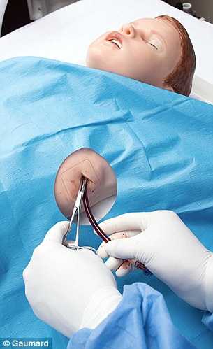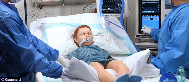 这款机械娃娃主要是用于训练医学生,学生们可以在机器人身上进行各种操作练习,包括测试心电图,将它喉咙切开创造新的气道以及测试葡萄糖等。