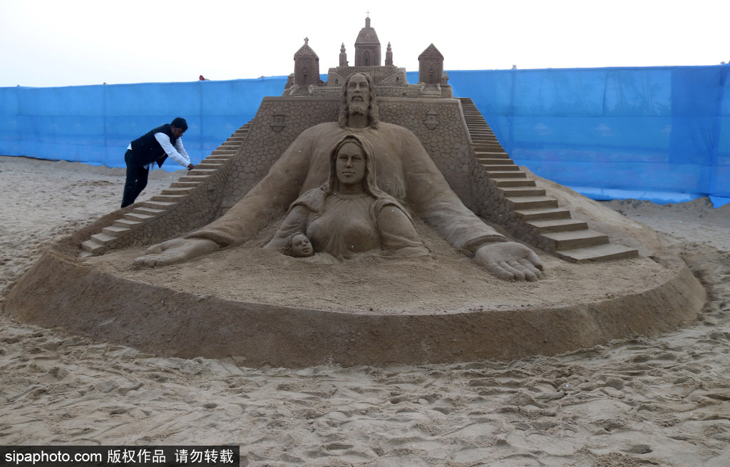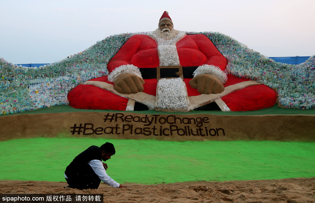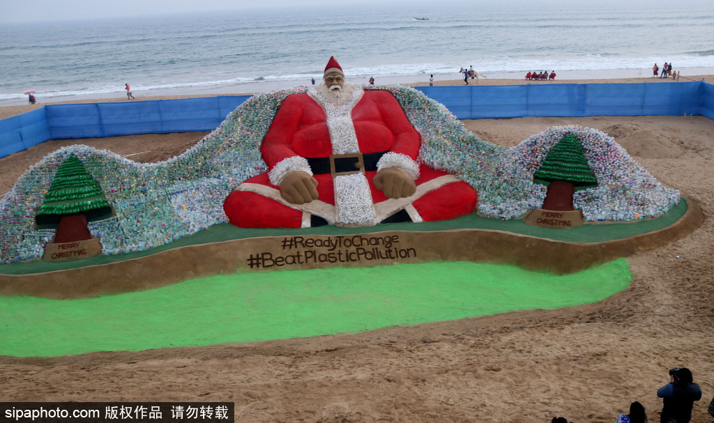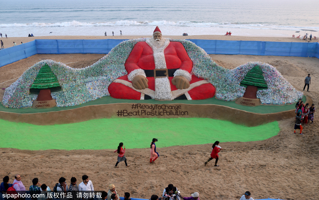 过节不忘环保!印度艺术家做独特圣诞沙雕引关注