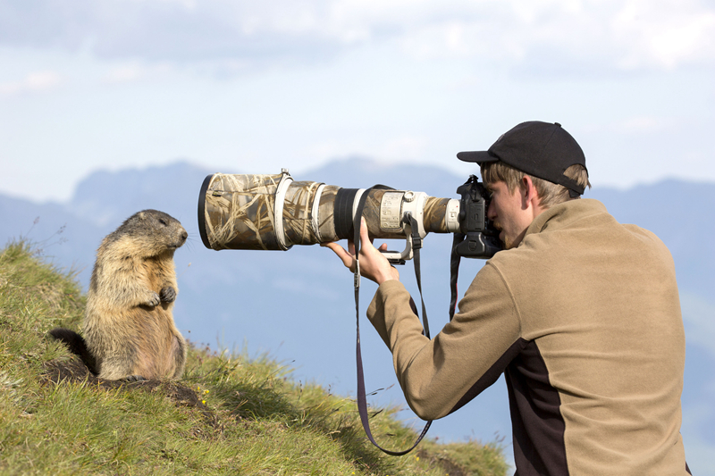 奥地利土拨鼠“客串”摄影师 拿相机有模有样