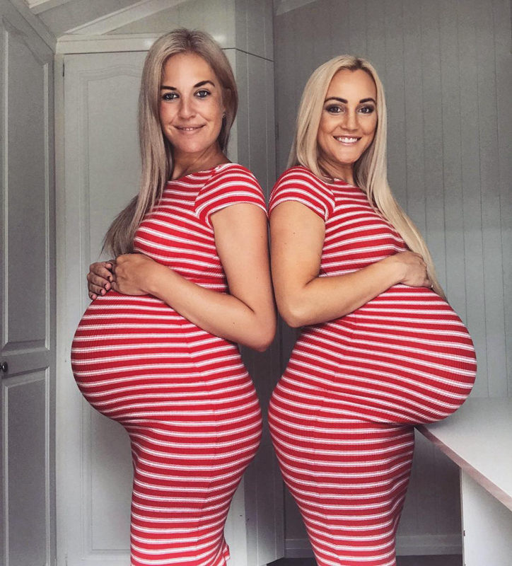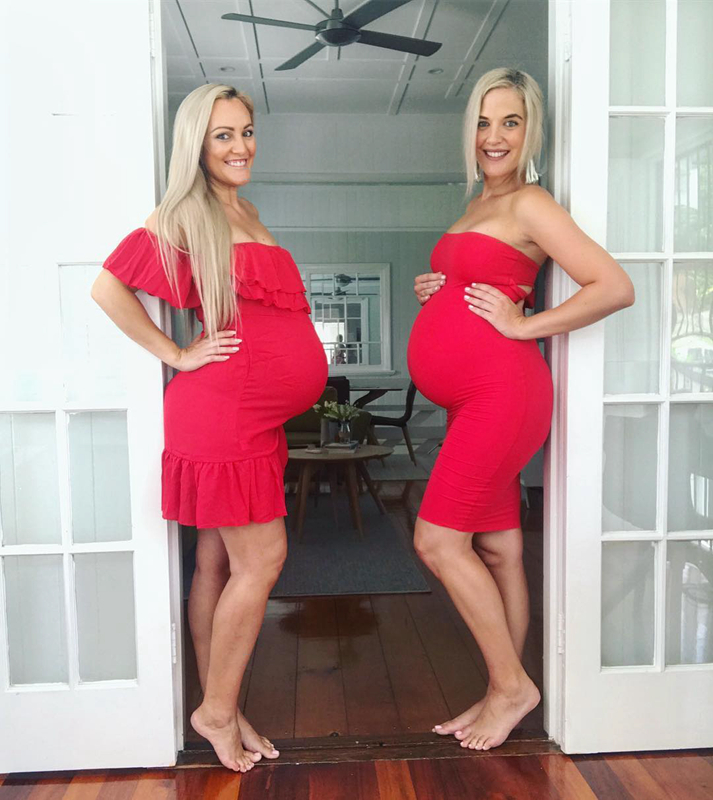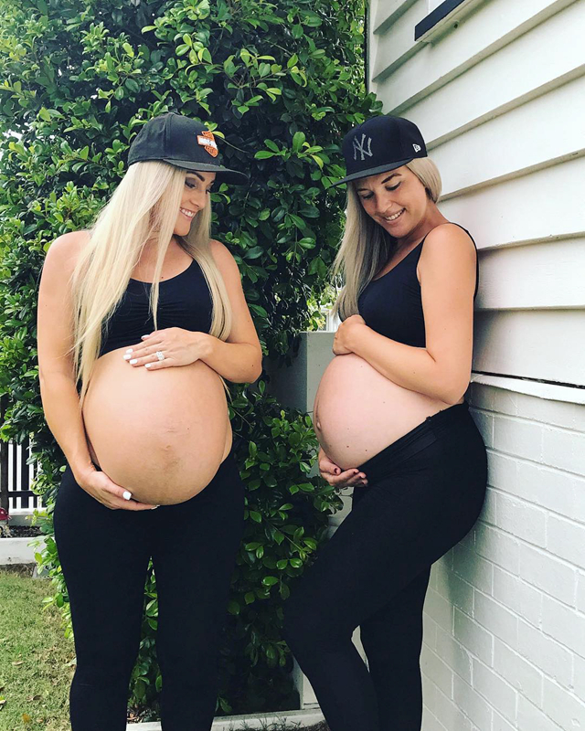 澳俩姐妹同时怀四胎 挺孕肚拍照别样浪漫