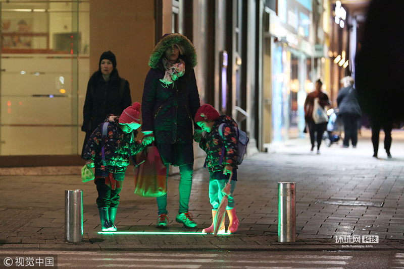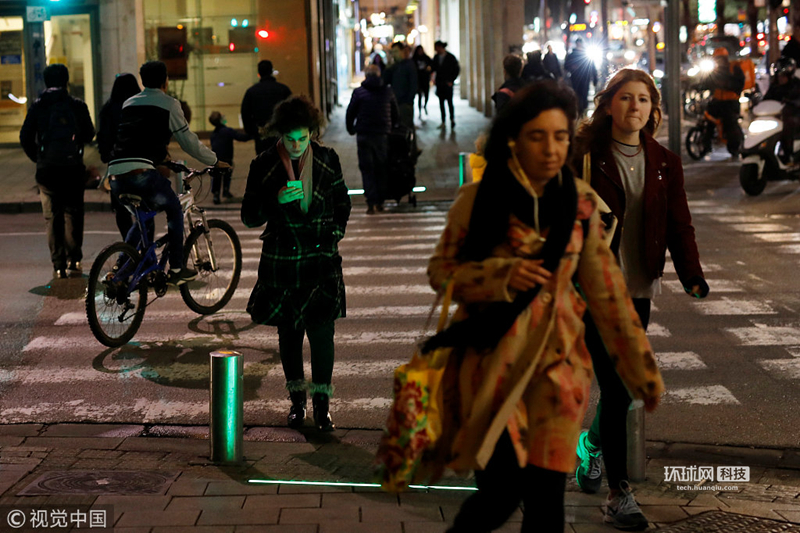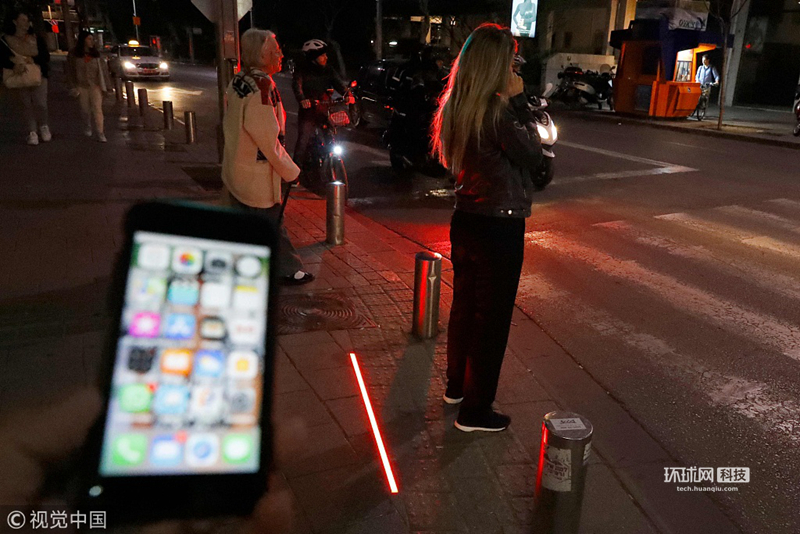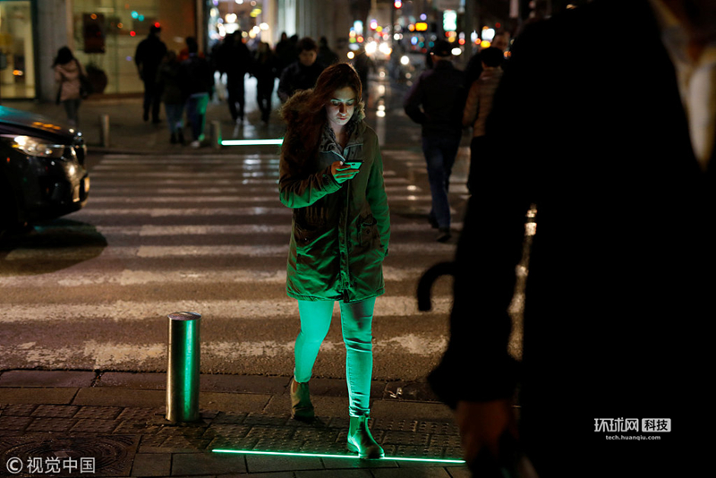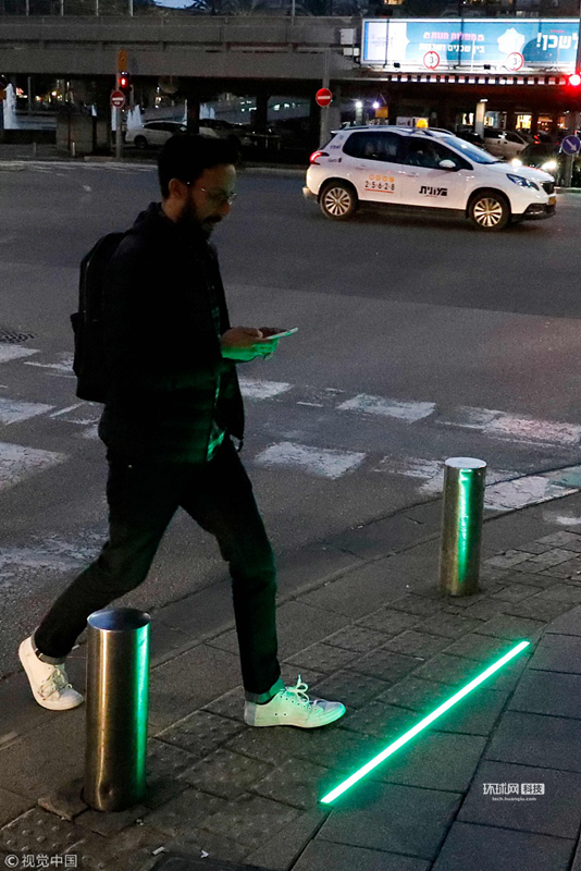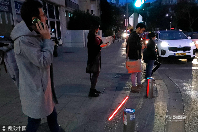 以色列街头现“低头族”专用红绿灯