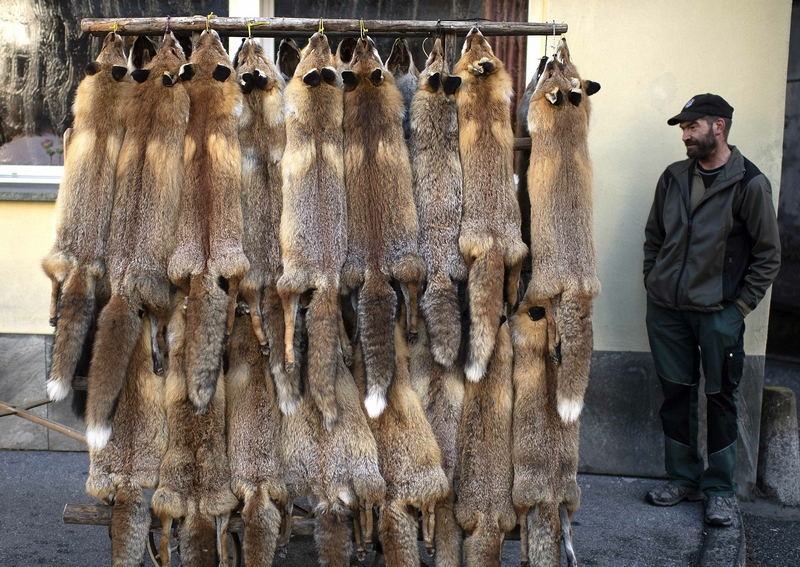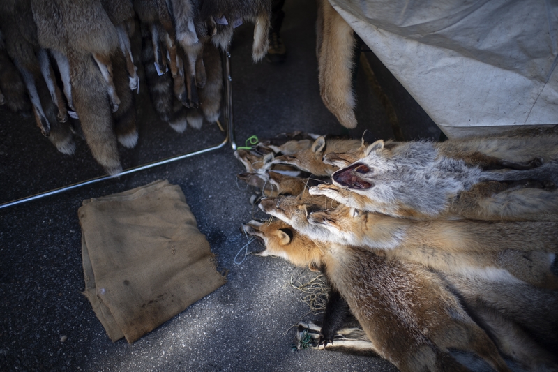 摄影师拍瑞士传统皮毛市场 狐皮成堆待售
