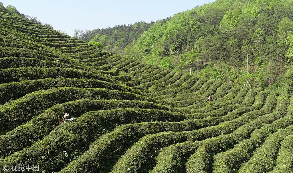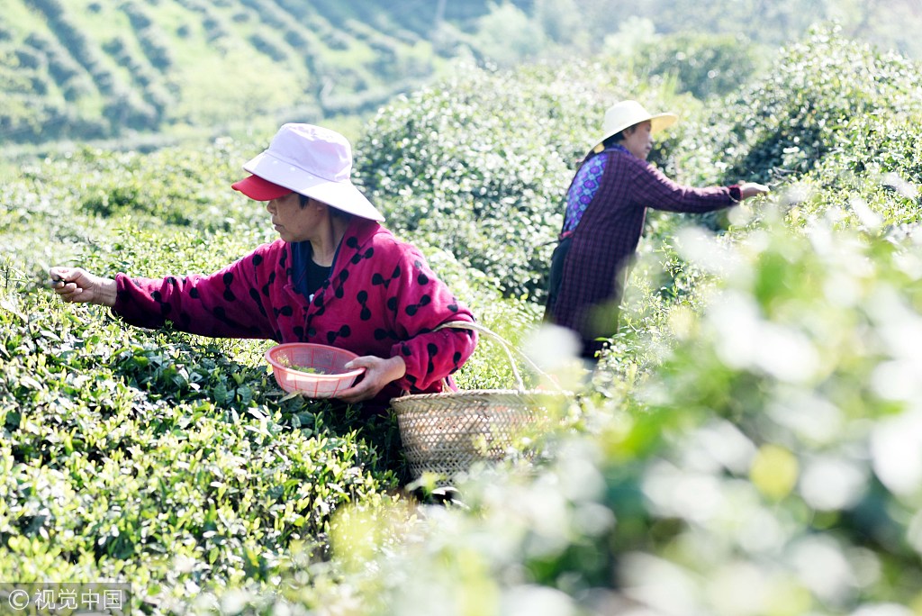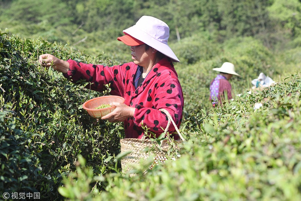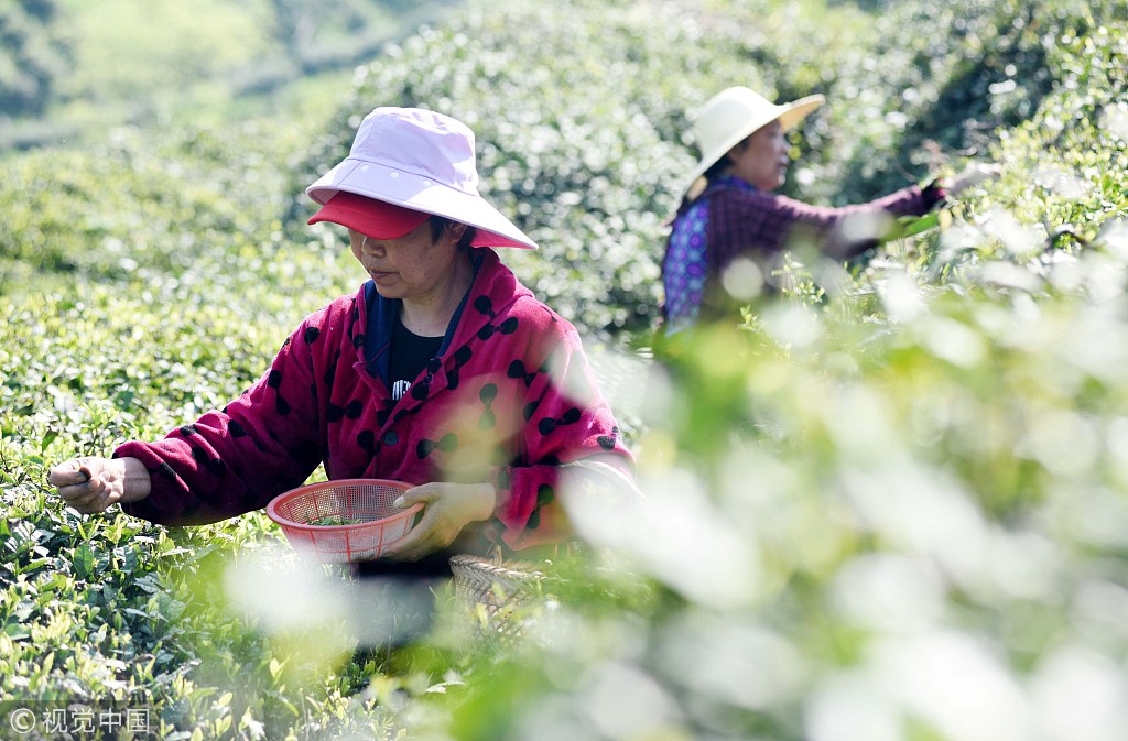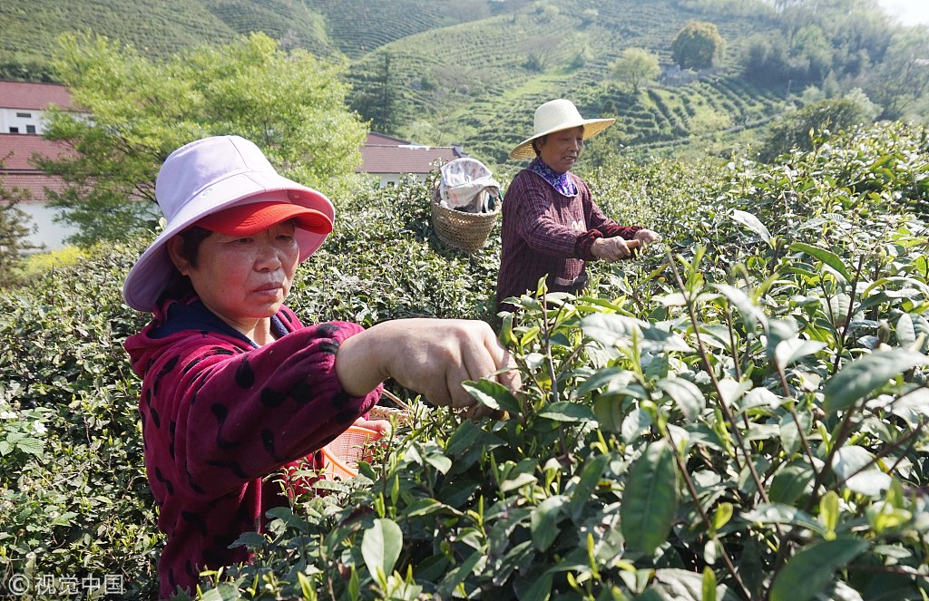 2019年4月8日,安徽铜陵天气晴好,气温升高,是春茶采摘的旺季。当地名茶“野雀舌”生长的仪凤岭五松茶林场,每天有200多名采茶女在山上抢摘春茶,供应市场。