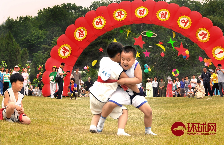 孩子们在摔跤(资料图,朝鲜驻华使馆供图)