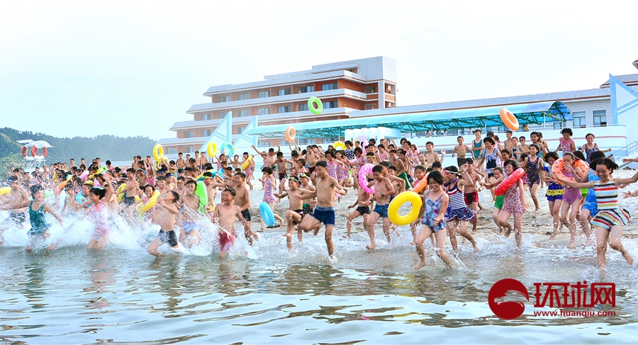 欢快的夏令营生活离不开海滨浴(资料图,朝鲜驻华使馆供图)