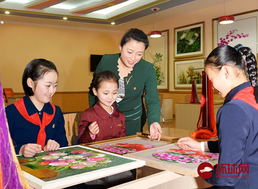 下课后学生少年还学习刺绣(资料图,朝鲜驻华使馆供图)