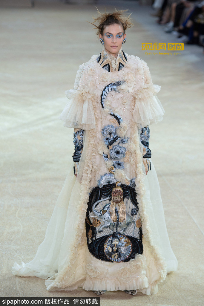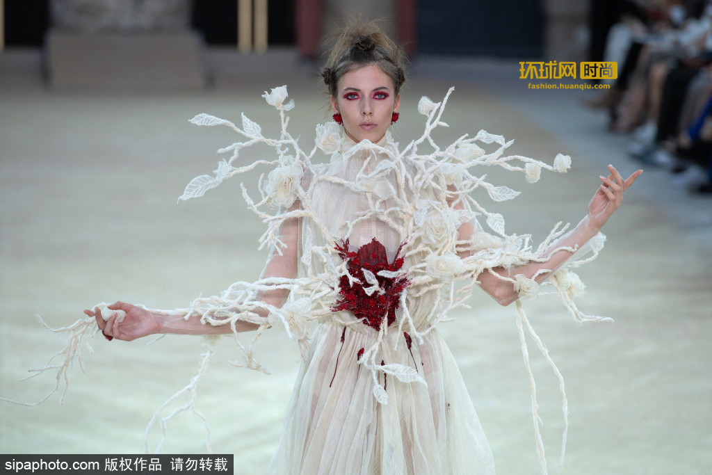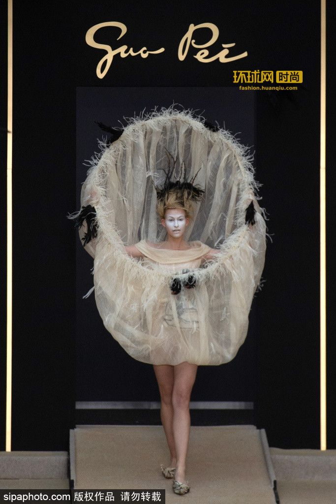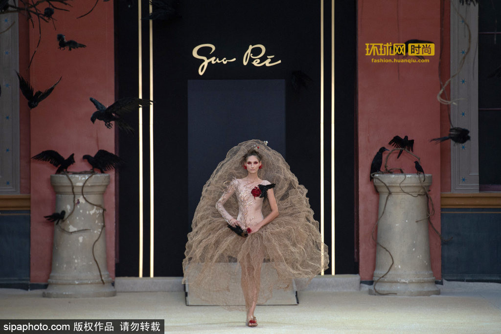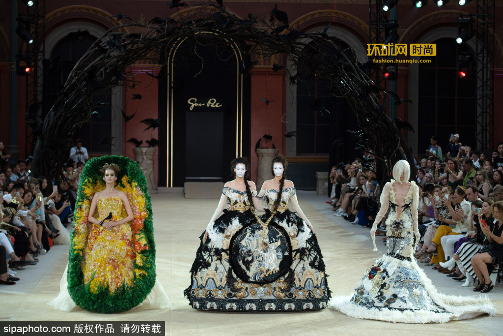 【环球网时尚频道讯】郭培巴黎时装周高定秀近日开启,整场大秀的服装造型诡异但是又不缺乏优雅,显示了郭培一向不羁的设计。