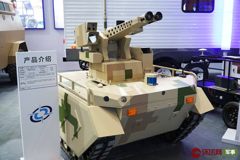 “尖兵”地面无人车,该车由履带式行走底盘加装一体化武器系统组成,具备敌情侦、火力突击、战场巡逻、警戒值守、引导打击等功能。