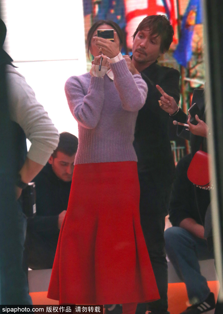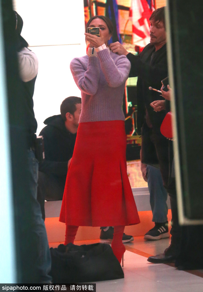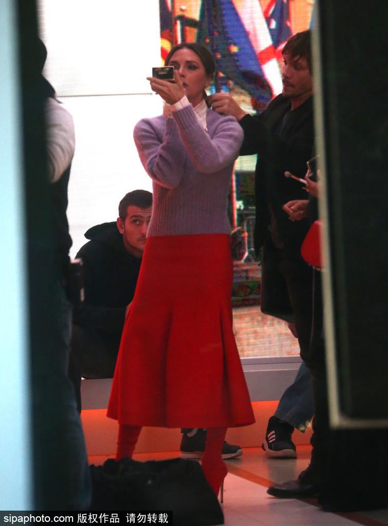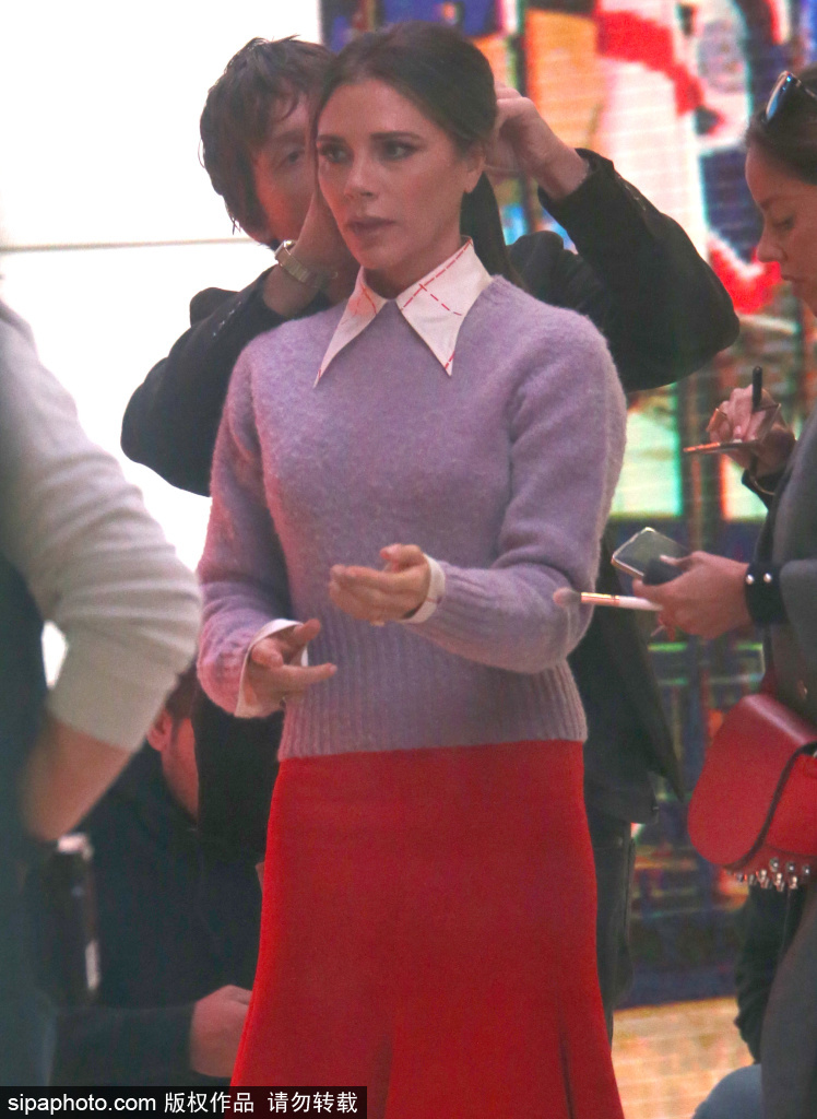 风姿绰约!“贝嫂”身穿紫毛衣搭配红裙更惹眼!