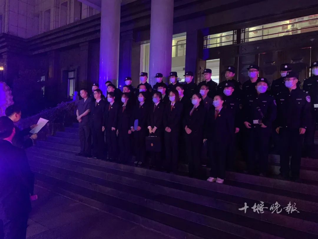 凌晨,十堰出动52名干警,他们被带上囚车