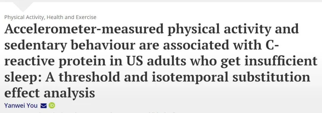 研究人员分析了美国国家健康和营养检查调查队列中2113名睡眠不足的参与者,睡眠时长不超过7小时被认为睡眠不足,通过加速度计测量了参与者的身体活动信息,包括久坐、中度至剧烈体力活动、轻度体力活动,并通过血液样本测量了C反应蛋白水平。