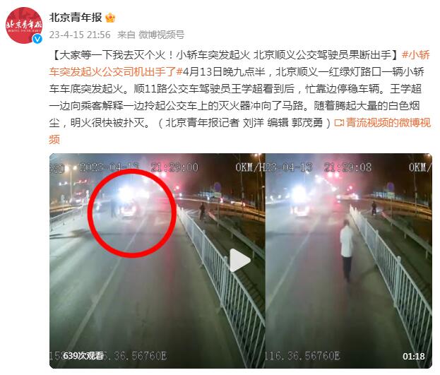 大家等一下我去灭个火!小轿车突发起火,北京顺义公交驾驶员果断出手