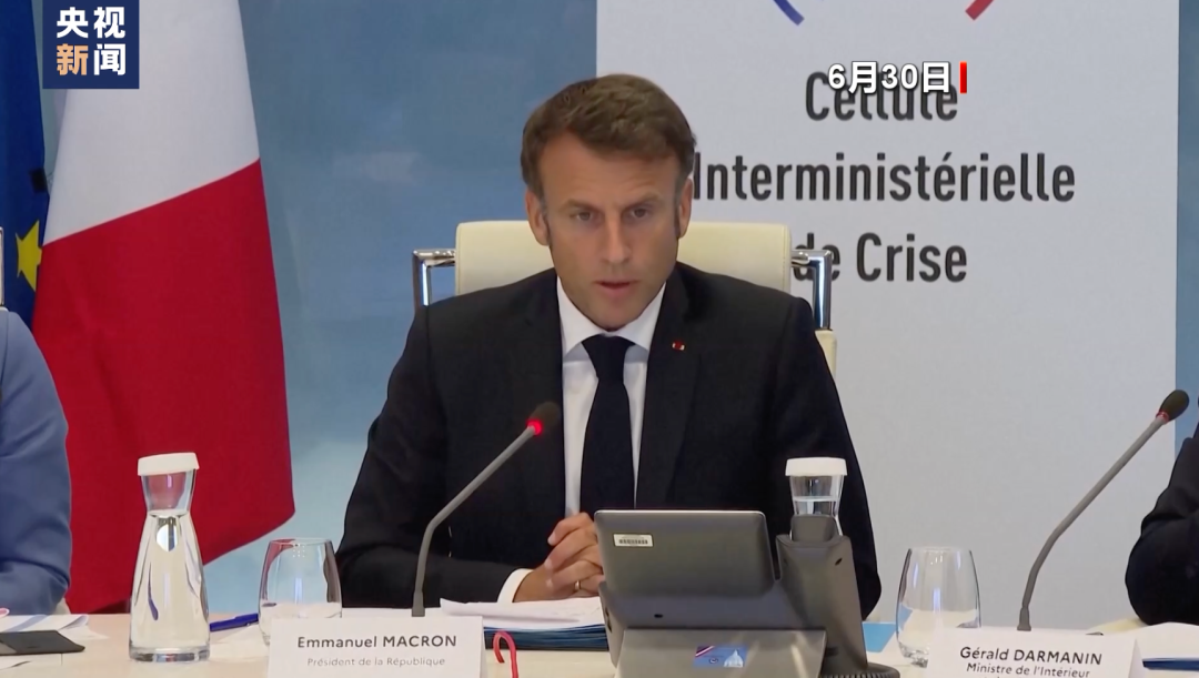 法国总统马克龙6月30日提前结束欧盟峰会行程回国,召开两天内第二次内阁紧急会议。马克龙表示,最近几天骚乱中的暴力行为是不可接受的,他将采取一切措施来维护国家秩序。