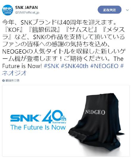 SNK将推40周年纪念游戏机 内含经典NEOGEO游戏