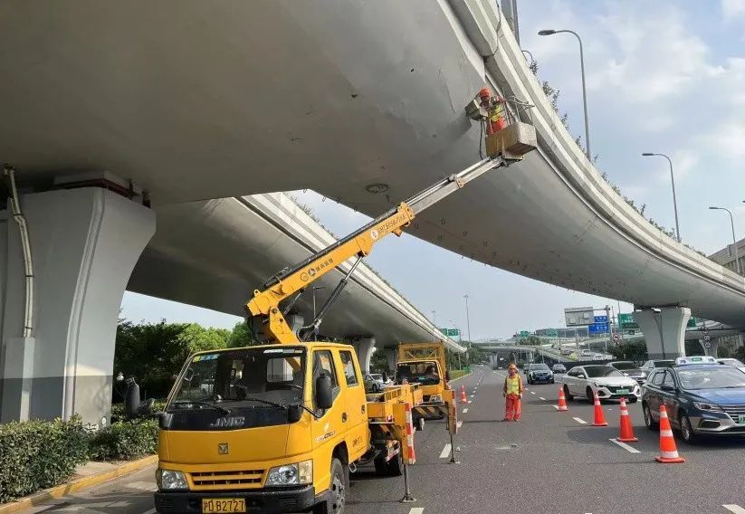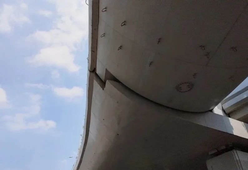 上海市交通委表示,看到网友发的视频后,高架养护单位高度重视,立即与检测单位前往现场检查。经过现场核实,视频中桥上对应的桩号为TJ00,具体位置处于虹桥南高铁平台出口进建虹高架。该处墩顶两侧梁高、梁的结构形式不同。一侧为主线、混凝土桥梁,截面较大;另一侧为匝道、钢结构桥梁,截面较小。经全面检测,该处不存在设计和结构安全问题,请市民朋友无须紧张。