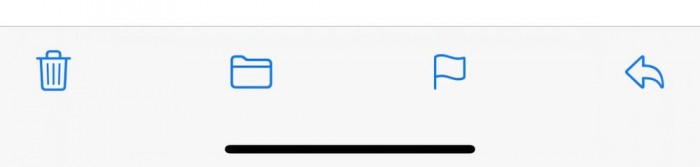 查看电子邮件时可用的新设计将回复按钮放在最右边,将删除按钮放在最左边,并将文件夹和标记图标放在它们之间。