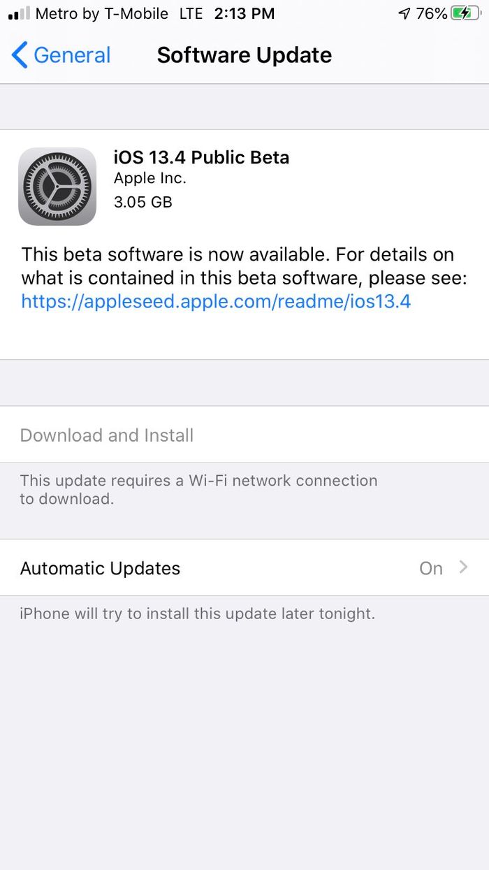 继几天前放出开发者预览版之后,今天苹果再次放出了iOS和iPadOS 13.4的公开Beta测试版本。已经签署苹果Beta测试项目的尝鲜者在iOS设备上安装恰当的证书之后,就能通过OTA方式下载iOS和iPadOS 13.4公开Beta测试版本。