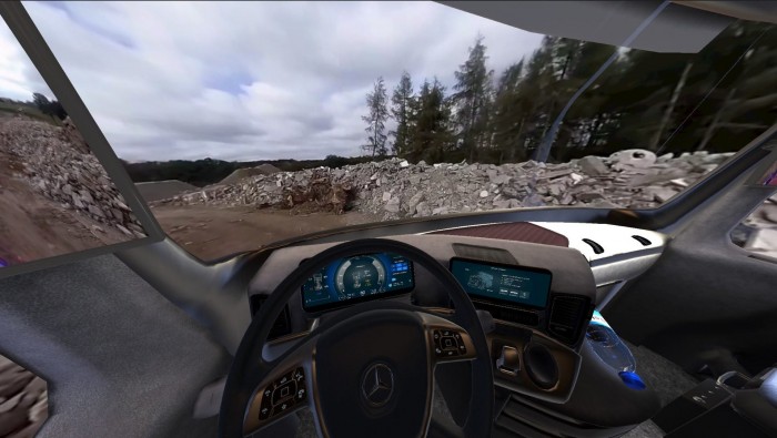 测试中,驾驶者将戴上VR头套用于获取卡车驾驶舱的3D模型以及各种驾驶情况。另外,驾驶者将得到一个跟真实多功能方向盘形状一样的配件。参加测试的人需要在用户友好的菜单导航屏幕和应用组合中进行输入。