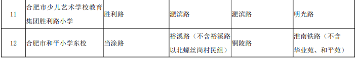 11.合肥市杨林小学:长江西路以南,绕城高速以西,望江西路以北,创新大道以东。