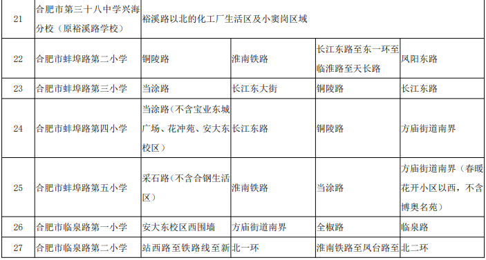 21.合肥市第四十六中学教育集团广东路中学: 南淝河路以西,中山路以北,锦绣大道以南,包河大道以东。