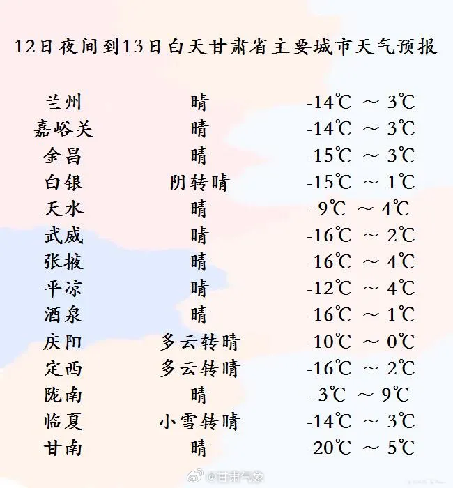 雪过天晴!甘肃气温持续下降,最低-20℃!