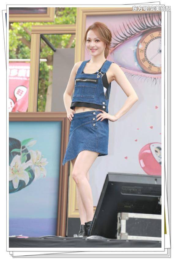 张韶涵穿着一身牛仔服装,看上去真的是古灵精怪真的很可爱哦,一个瘦小的精灵看上去很让人心疼呢,吊带式的设计秀出美颈美肩,真的是很吸睛呢。