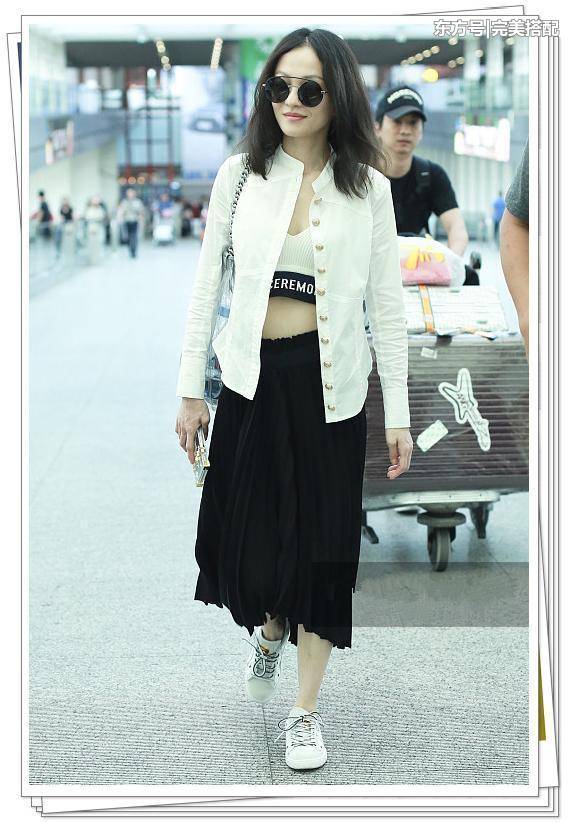 没想到!36岁张韶涵靠这件能穿出比基尼效果的小背心,机场秒变热辣女神。