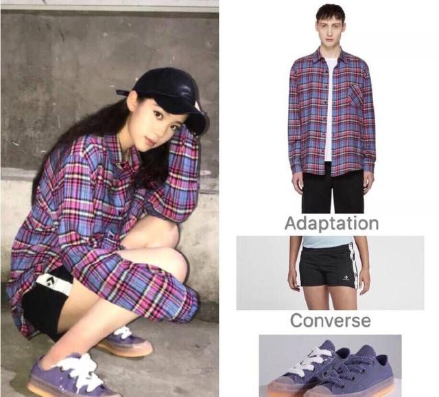 欧阳娜娜这一次的街拍主题主打的颜色就是紫色。从衣服到鞋子,全都被紫色包揽。上衣是一件紫色的格子衬衫,各种鲜艳的颜色穿插在一起,时尚感十足。衬衣的造型就是一件非常普通的衬衣,原本这件衬衣是男士款,宽松休闲的版型穿在欧阳那娇小的身材上,倒显得十分的潮流动感,街拍范儿十足。再搭上一个黑色的棒球帽,整个人洋溢着青春时尚的气息,活力十足。