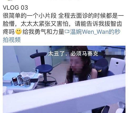 近日温婉又发了一段视频,这段视频主要是拍摄温婉去牙医诊所看自己的牙齿,算是一个小纪录片了。本来温婉性情美美哒,穿的衣服化的妆也是美美哒!
