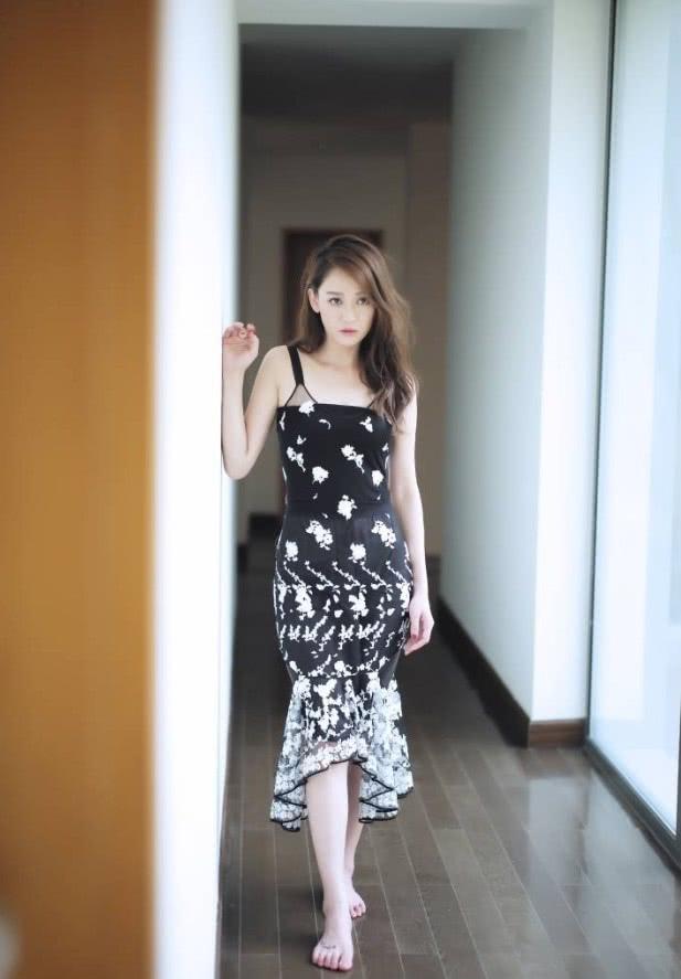 我们再来看看陈乔恩其他美美的造型吧。陈乔恩身穿一件黑色吊带印花连衣裙,裙子的设计非常优美,吊带的设计展现了陈乔恩深邃的锁骨和好看的肩部曲线,显得非常迷人,鱼尾下摆的设计显得更加优雅时尚,美感倍增。