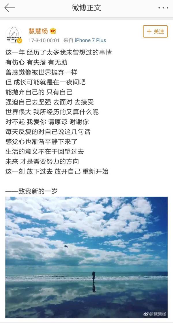 而现在的她,根据七夕时点赞微博来看,本人也很期待新恋情的到来了,也有可能是在进行时哦。离婚后的她,也变得特别爱抒发感情,经常在小号上发表鸡汤文,大致的意思就是要释怀、真诚等等,看来应该是走出了阴影了。