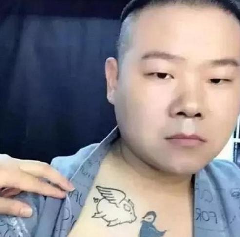 看到师傅都秀纹身了,岳云鹏也赶紧来凑热闹,不知道这纹身寓意什么意思呢,但是看一次笑一次,能不能不要这么萌。