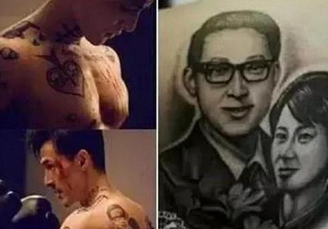 胡歌是娱乐圈有名的大孝子,所以把爸爸和妈妈的合影纹到了身上。