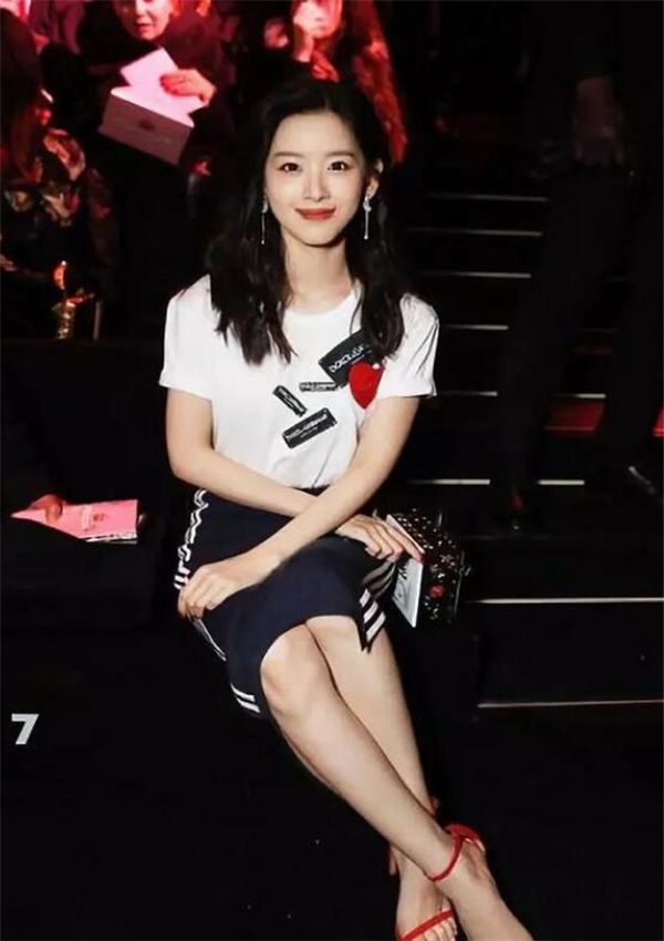 章泽天长相并不是很惊艳,但胜在五官小巧精致,中长发一直是标配,可驾驭各种风格的时装搭配,穿着白色T恤,搭配黑色紧身短裙,双手交错防止裙边,防止走光,自我保护意识还是挺强的