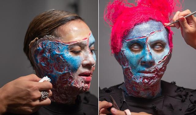 不久前余安安还参加一个公益活动,坐了整整6个小时,让化妆师把自己变成了一个丧尸,看起来非常吓人。