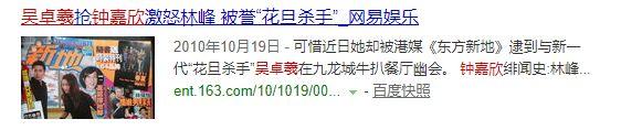 而另一位绯闻男友吴卓羲,则是由合作《点解阿sir系阿sir》而起。甚至有报道称,吴卓羲为了抢钟嘉欣不惜激怒好友。