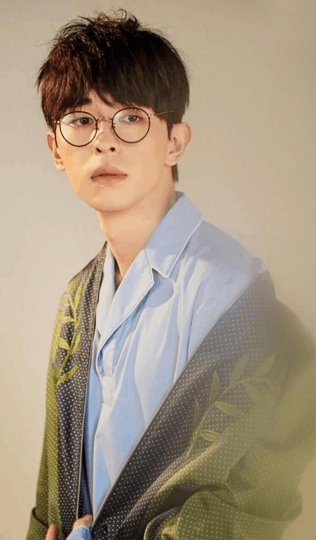 这一张有点像是邓伦的脸部特写了,五官还是非常标志的,鹰钩鼻+浓眉大眼,帅哥的标配他都有~浅蓝色的衬衫打底看起来很斯文,外套的设计很有特点,黑白波点花纹还有这绿色花草图案做点缀,再配上一双黑框的眼镜,颜值不是一般的高噢!