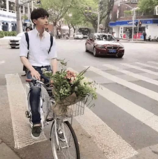 邓伦是很多女生心目中暖男的标准吧,白色衬衫+牛仔裤,踩着小单车满满的小清新风,虽然张一山那种痞帅的风格很讨人喜欢,但是对于相对安静一点的女生的话,邓伦这样的暖男是更加合适的~也难怪有那么多少女会为邓伦疯狂打call了~
