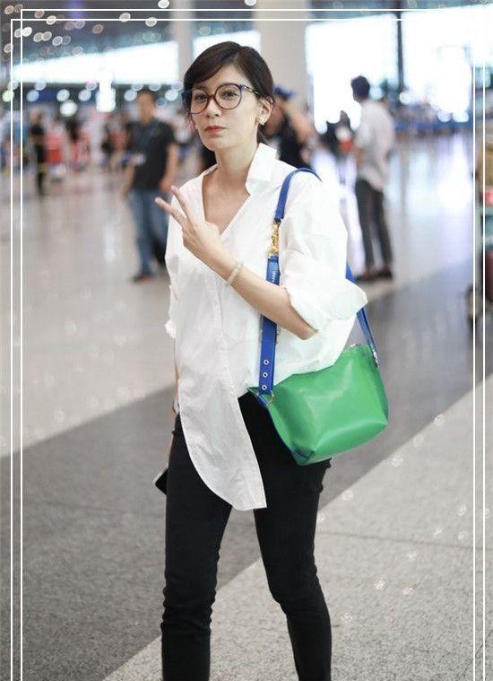 白色的衬衫,搭配上黑色的长裤,再配上一款绿色的单肩包。这种穿搭十分的休闲,可是穿在贾静雯的身上,也难免会有种随便的感觉。