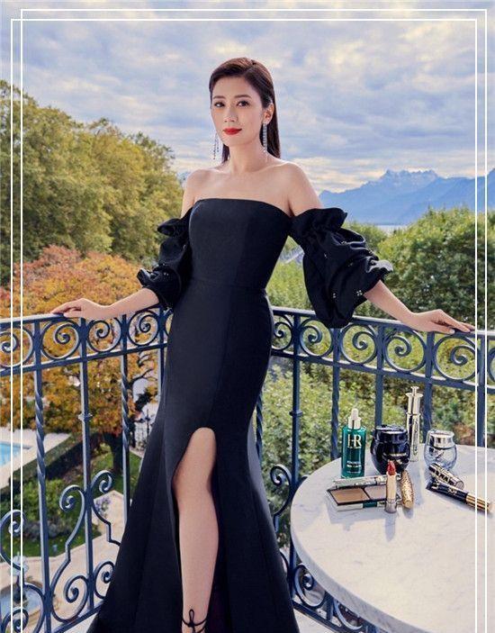 黑色的长裙配上一抹红唇,真是让贾静雯气场全开,长裙的侧面还有着斜开叉的设计,这种若隐若现的感觉才是更加撩人。
