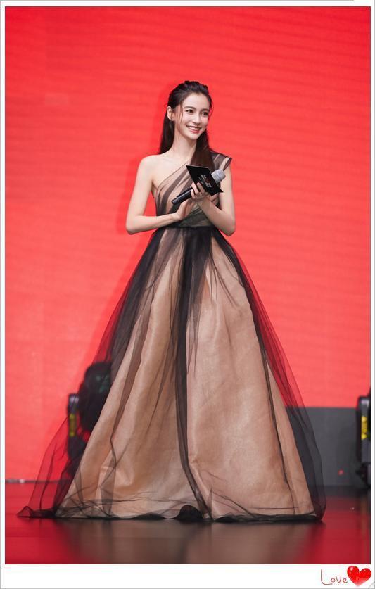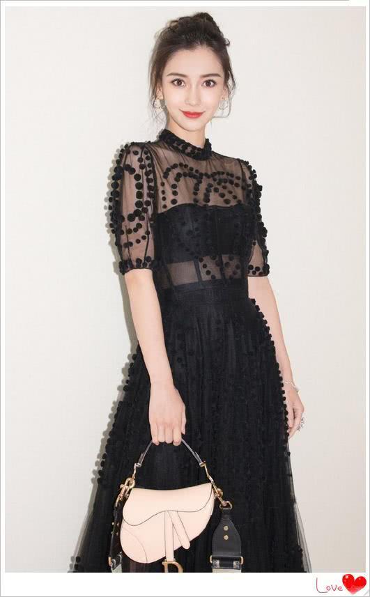 baby一件黑色长款礼服,衬得肌肤白的像雪一样,精致的妆容更是让她变成了一位公主一般,真的是太美了吧!