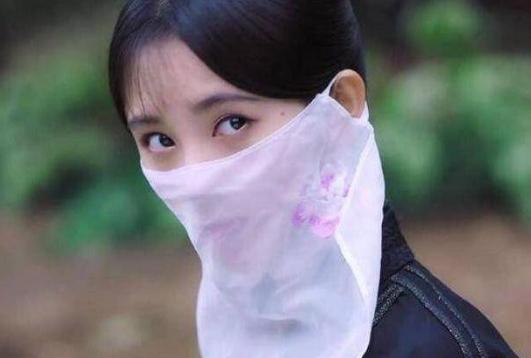 一身酷酷的装扮就被脸上这个粉红色面纱给出卖了,首先这一定是女演员,因为面纱是粉红色的。第二这个眼睛就能看出是四千年美女的鞠婧祎