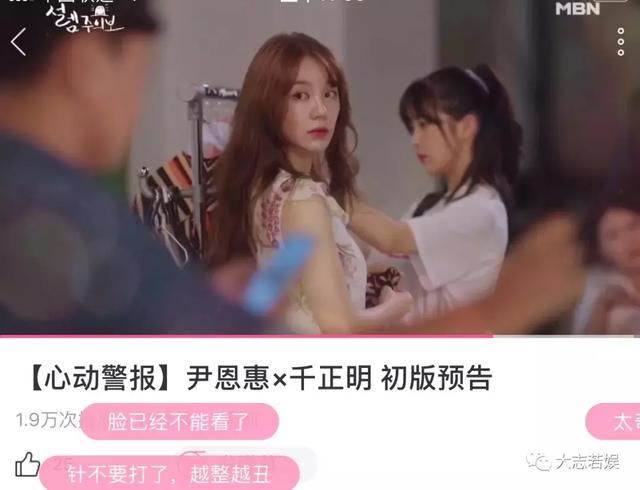 由于受抄袭事件影响,尹恩惠淡出观众视线已经五年之久。本想借新剧复出,但预告公开后,她却陷入了整容的质疑中,弹幕中都是网友关于整容话题的留言。