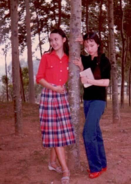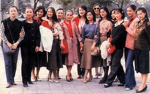 图:老版《红楼梦》幕后珍贵旧照。王熙凤邓婕好时髦,陈晓旭戴着宽边帽子。很多红楼梦幕后合影中,陈晓旭都很少笑,她的表情就像剧中的林妹妹,很是忧郁。